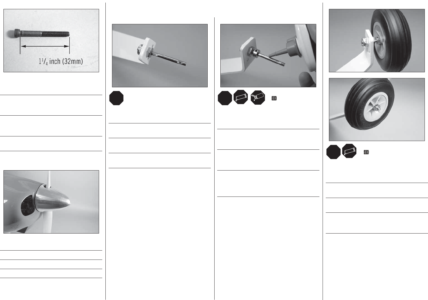 Attach the axle to the landing gear. Use a 1/2-inch and 7/16-
